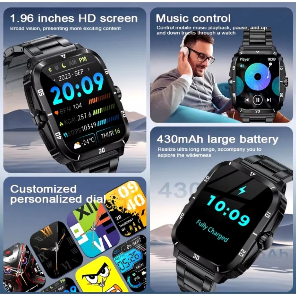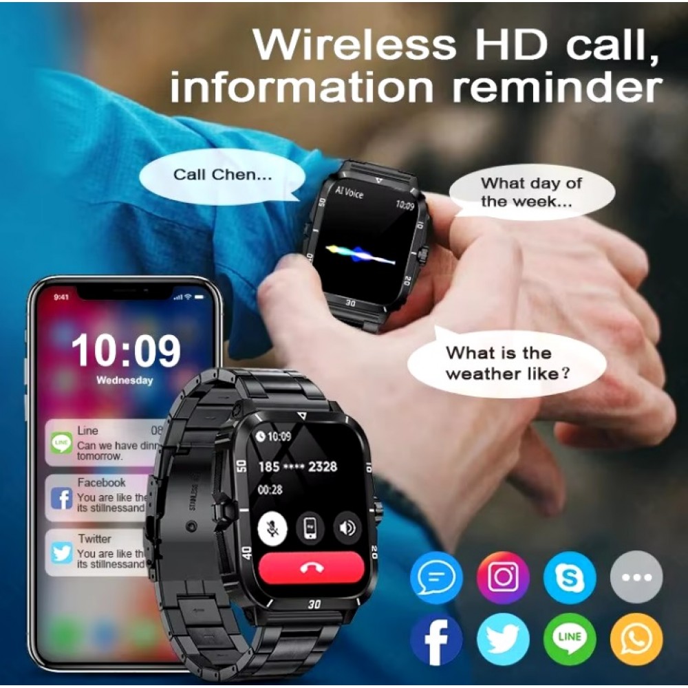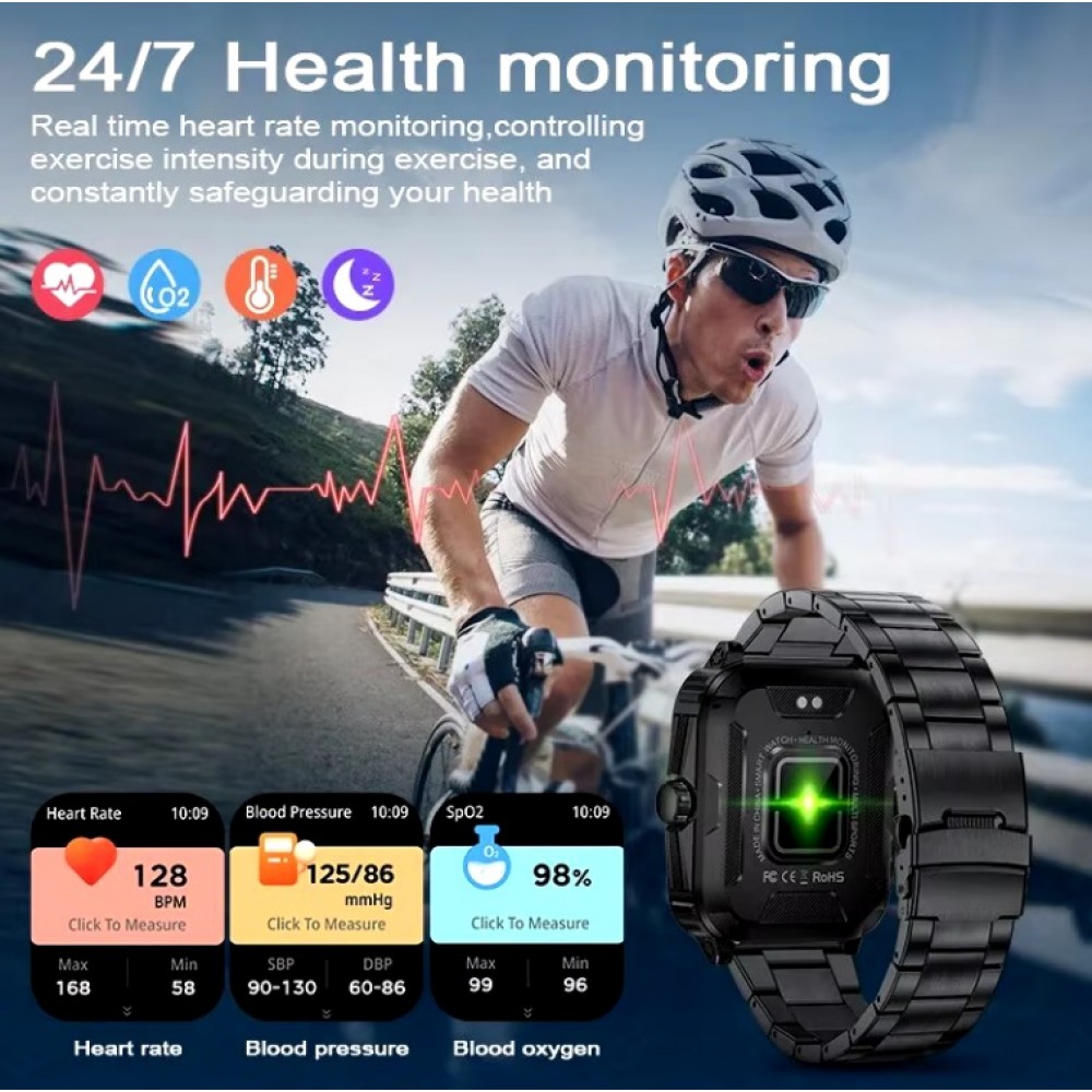 Reloj inteligente Hombres LIGE, resistente control del oxígeno en sangre, Bluetooth, llamadas, 1,96 pulgadas
