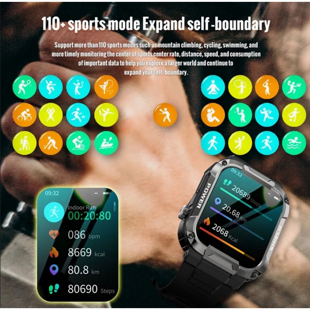 Reloj inteligente militar resistente para hombre para Xiaomi Android Ios Ftiness relojes Ip68 resistente al agua 1,85 'reloj inteligente de presión arterial 2023 nuevo