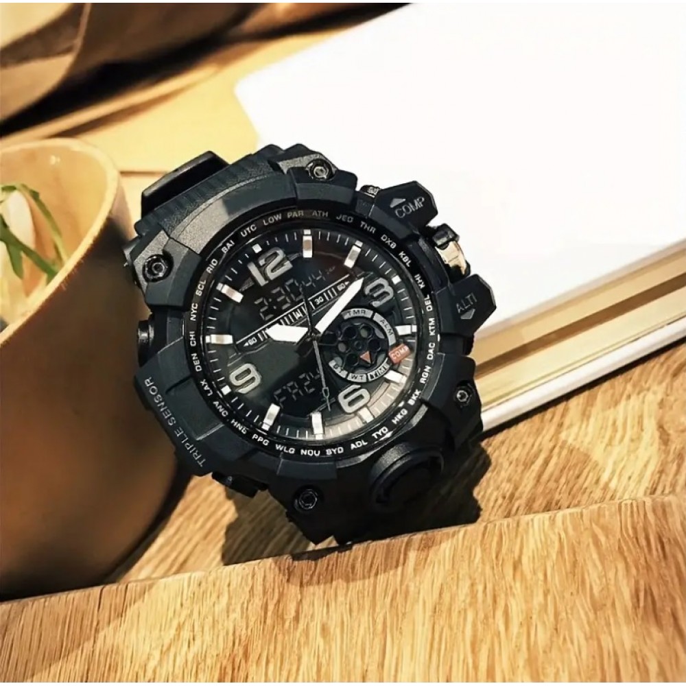 Reloj táctico militar de pulsera para hombre, deportivo con doble movimiento de cuarzo, reloj analógico digital - Blanco Negro