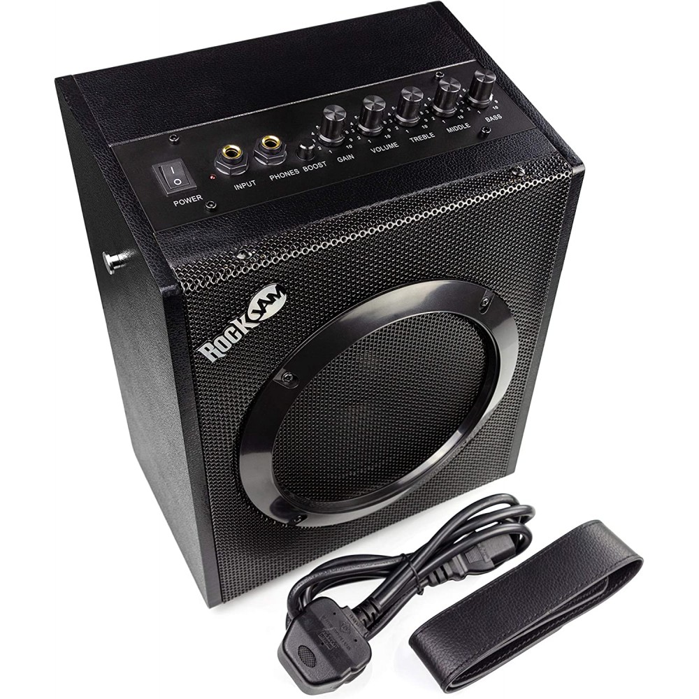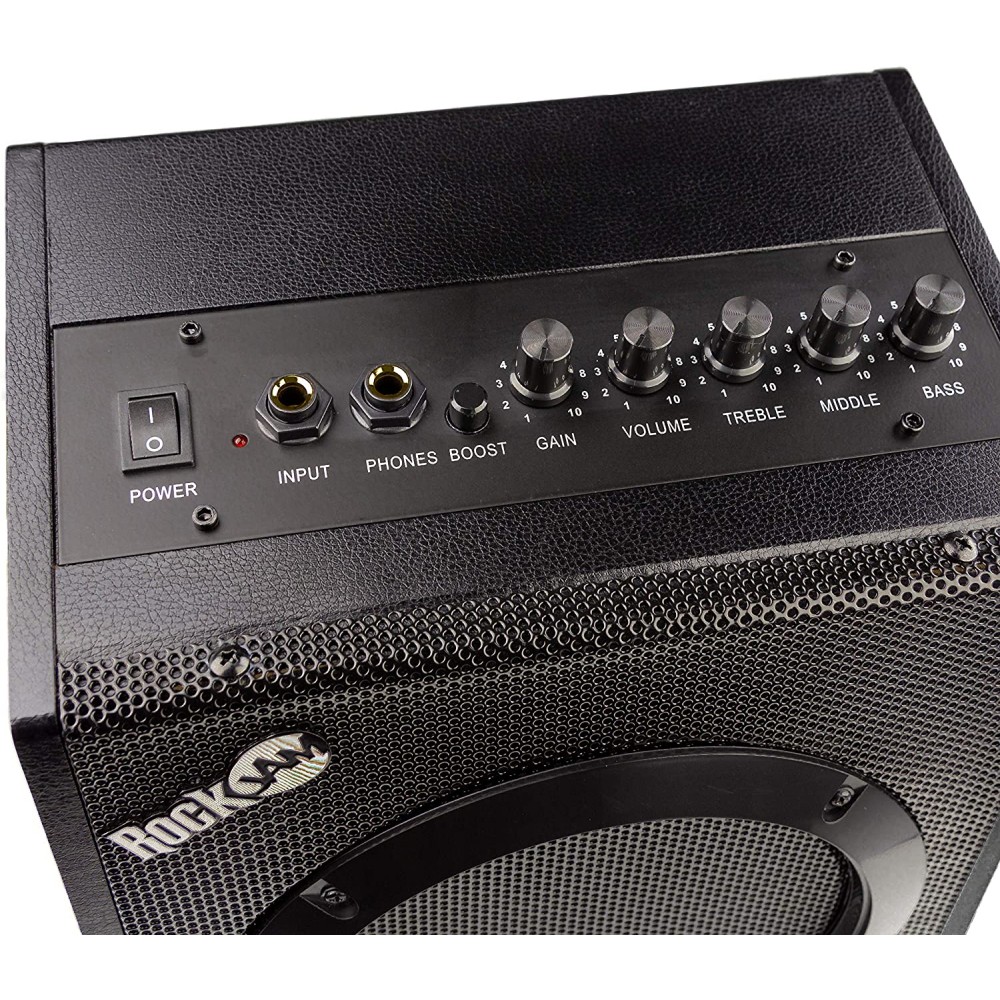 RockJam Amplificador de guitarra eléctrica de 20 vatios con entrada de auriculares, ecualizador de tres bandas, sobremarcha y ganancia de potencia
