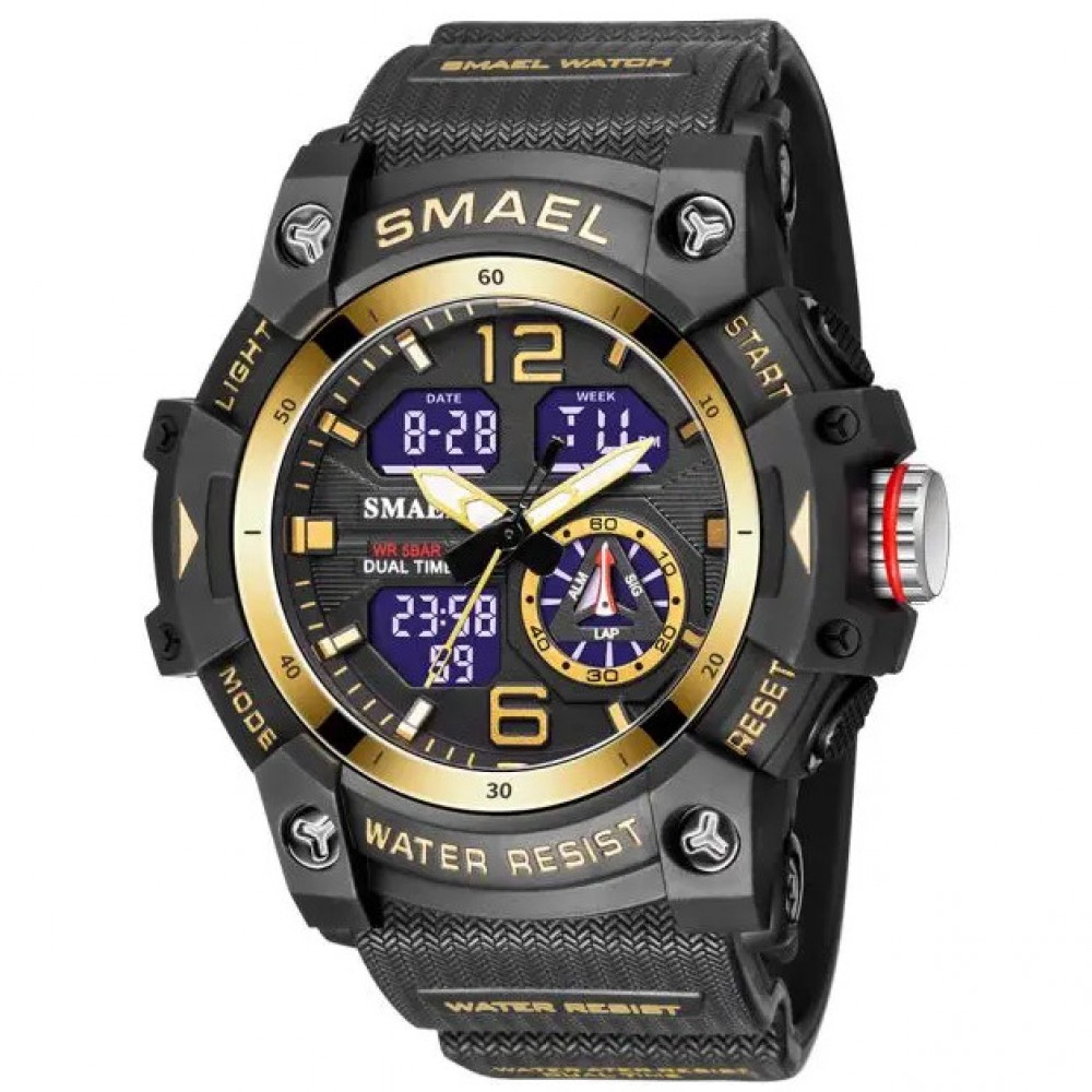 SMAEL Reloj deportivo para hombre camuflaje dorado negro, táctico militar cronógrafo resistente al agua, con alarma