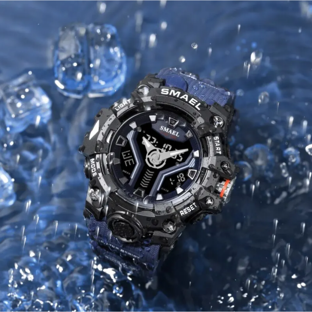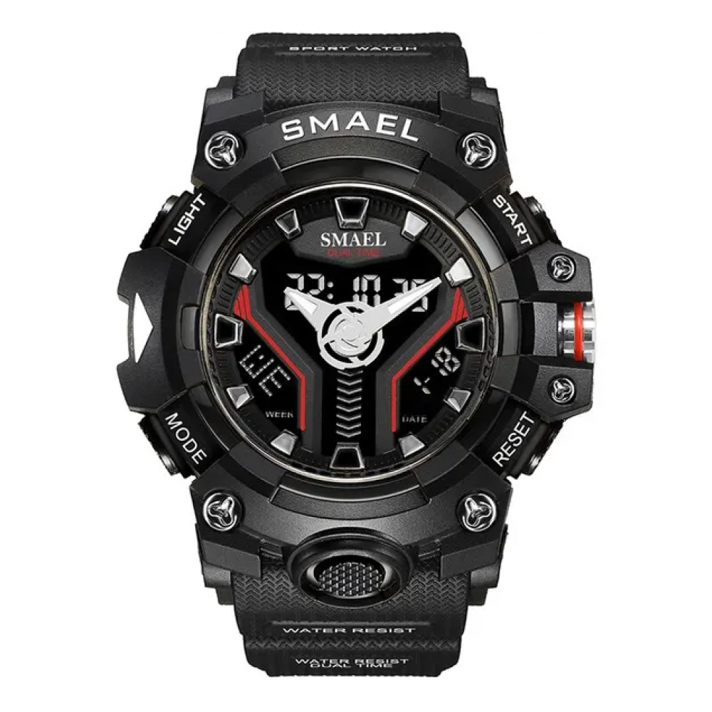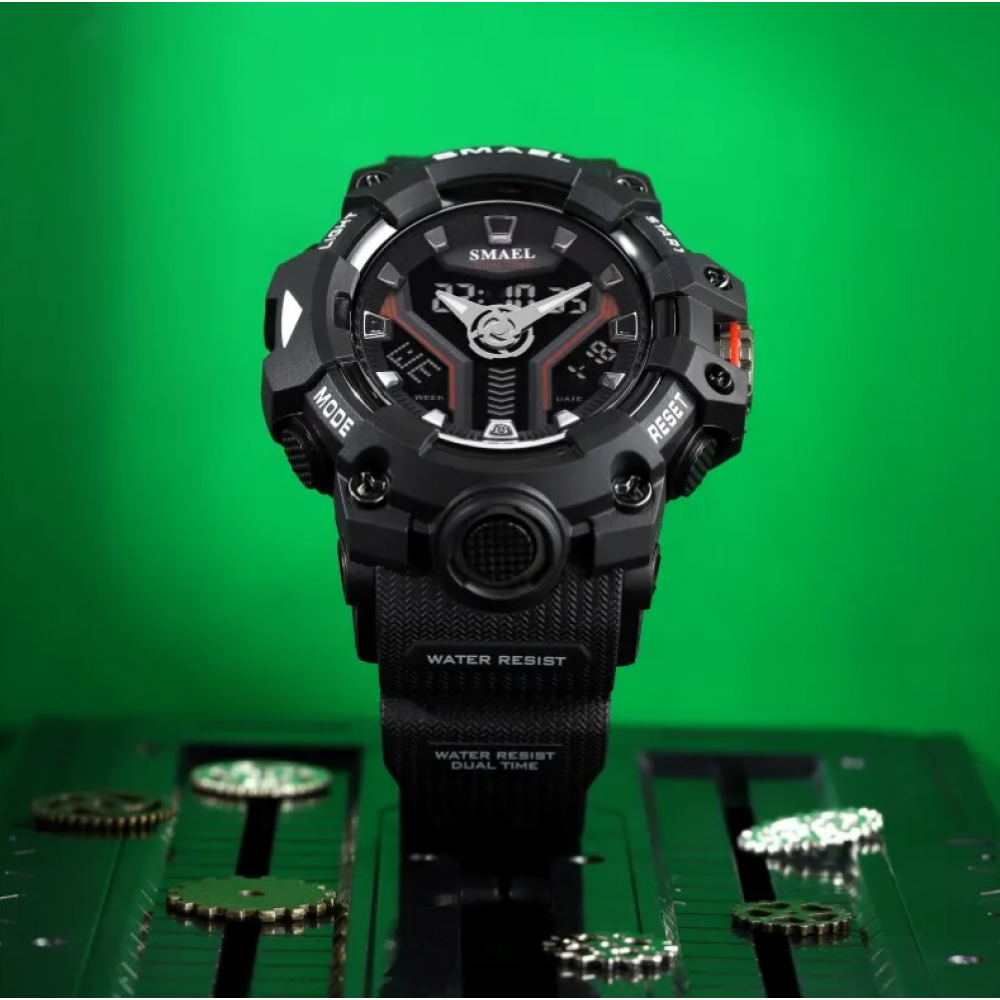 SMAEL- Reloj deportivo para hombre, cronógrafo con doble horario, resistente a los golpes, con luz Led, Táctico militar, 8075