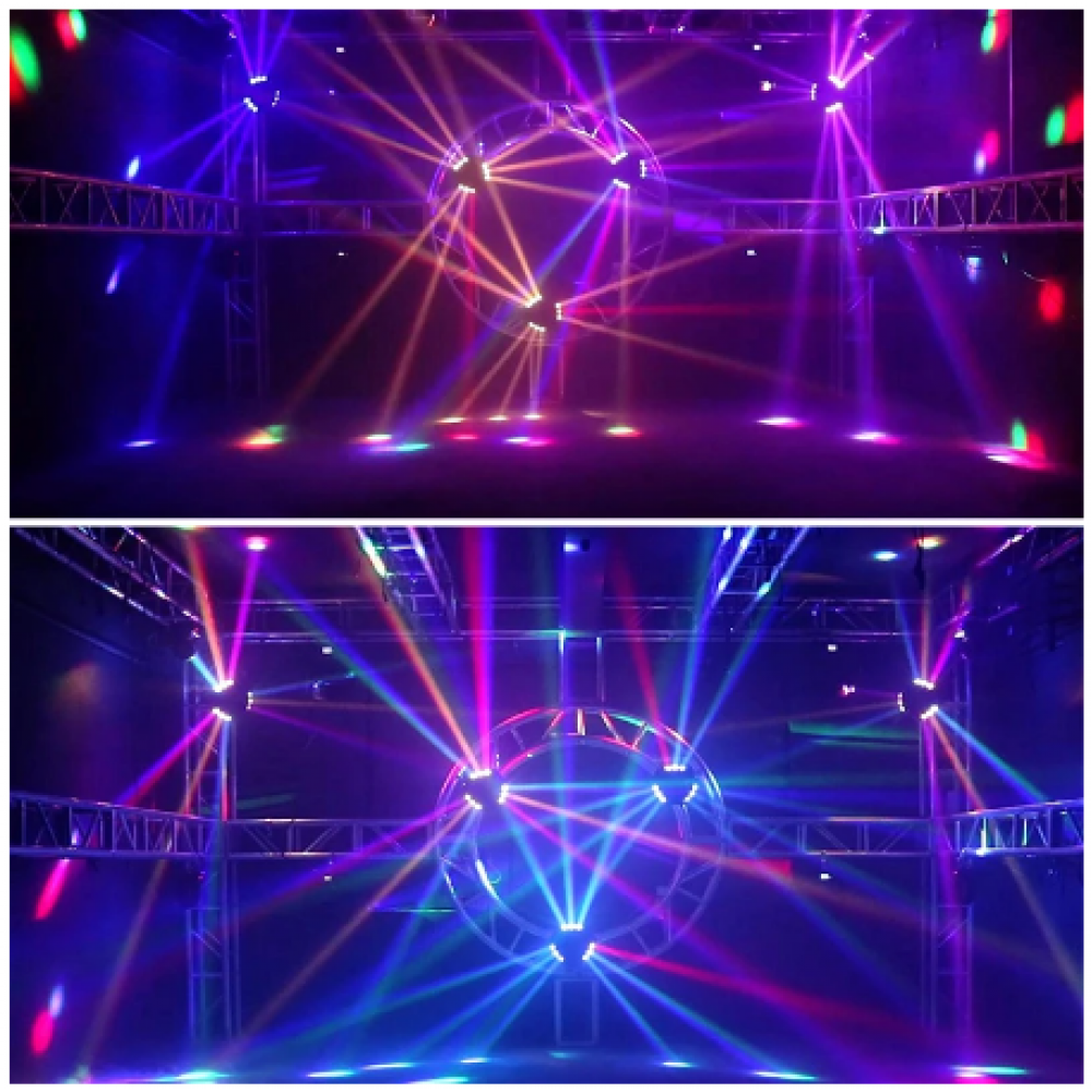 Modos de funcionamiento: DMX512, ejecución automática, acción de sonido, estroboscópico, independiente y maestro/esclavo, con rico programa Integrado Avanzado