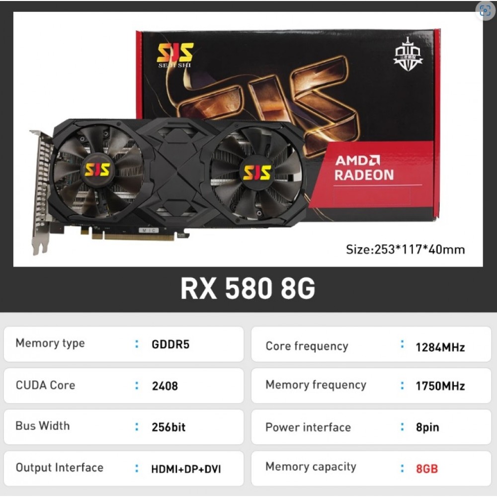 SJS - tarjeta de vídeo RX 580, 8G, 256Bit, 2048SP, GDDR5, AMD, GPU, para Gamer, Radeon, 8GB