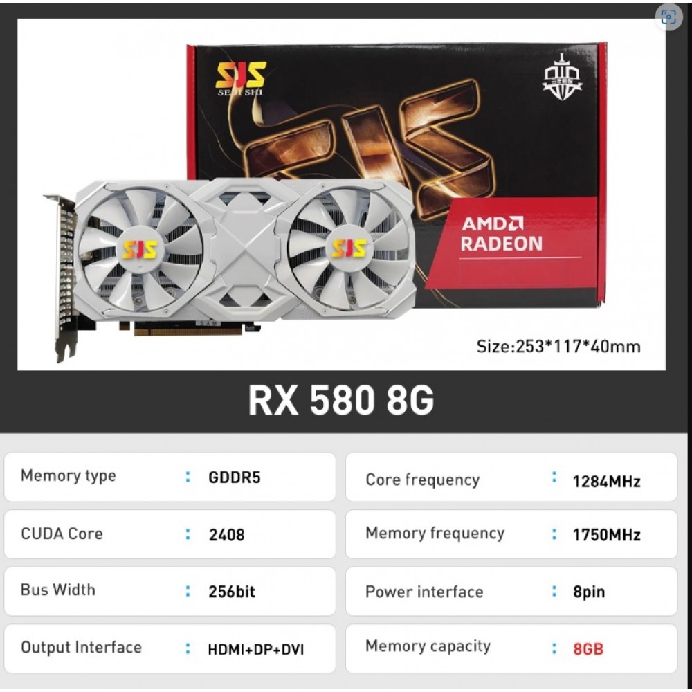 SJS- Tarjeta Video RX 580, 8G, 256Bit, 2048SP, GDDR5, AMD, GPU, RX580, tarjeta de vídeo blanca, Radeon, 8GB