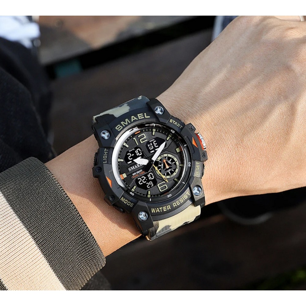 SMAEL Reloj deportivo para hombre camuflaje verde negro, táctico militar cronógrafo resistente al agua, con alarma