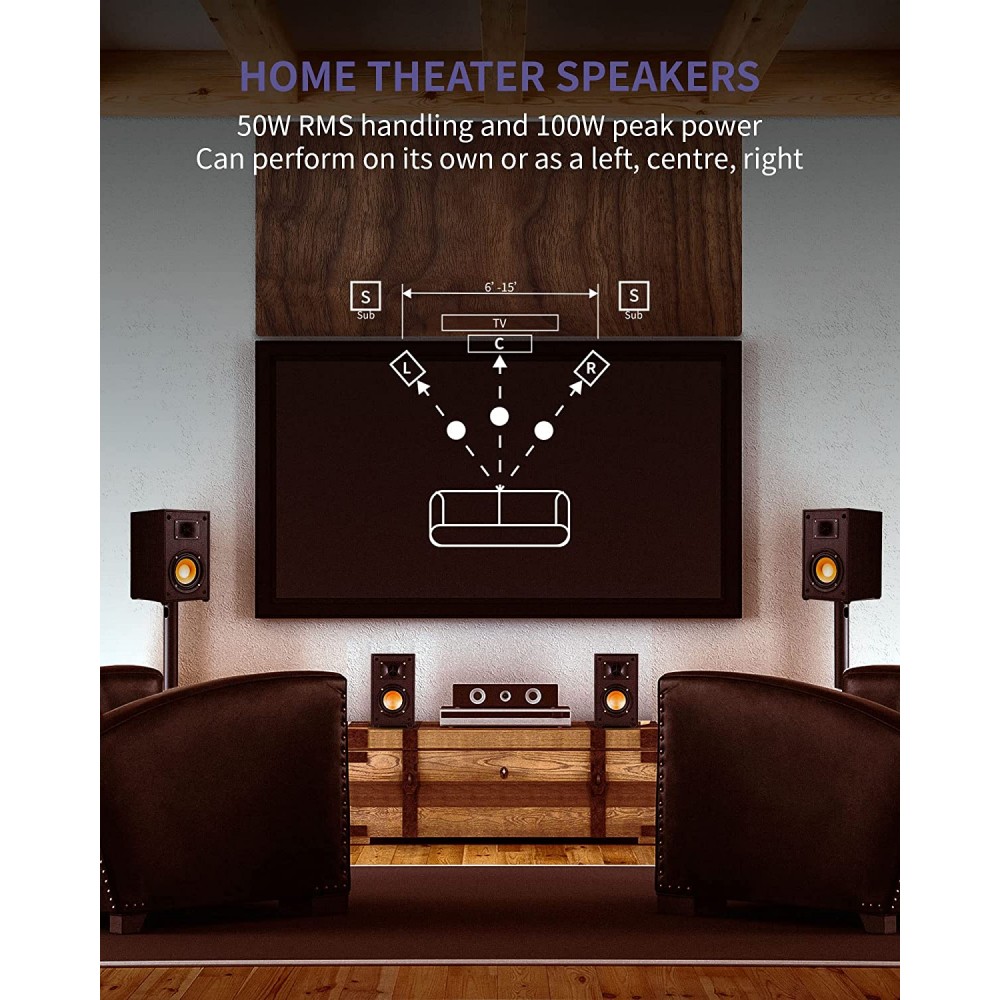 - Bajos fuertes, alta sensibilidad: un woofer de cobre hilado de 5.25 pulgadas y el diseño especial de cuerno enriquecen y profundizan los graves (buceo a 60 Hz), por lo que puedes sumergirte en el mejor sonido. Los altavoces pasivos de estantería tienen una sensibilidad de 94 dB, lo que te permite disfrutar de los graves incluso en volumen máximo utilizando un amplificador de baja potencia. La pérdida mínima de graves está garantizada por 4 pies de goma sólida para reducir la vibración inútil.