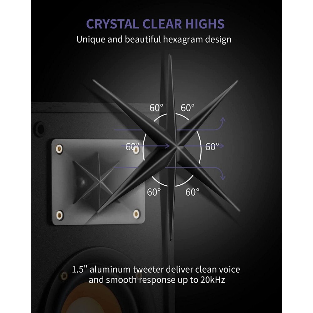 - TWEETER, CRISPER HIGHS: originado por Starfavor, hermoso tweeter de diseño hexagonal es estándar de 1.5 pulgadas y más ancho que otros, tiene un bonito patrón de dispersión y una respuesta suave de hasta 20 kHz, reproduciendo los agudos más claros, más detallados y más limpios.