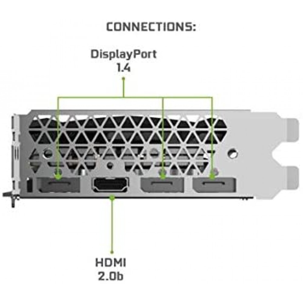 - 3 x DisplayPort 1.4, 1 x HDMI 2.0b.