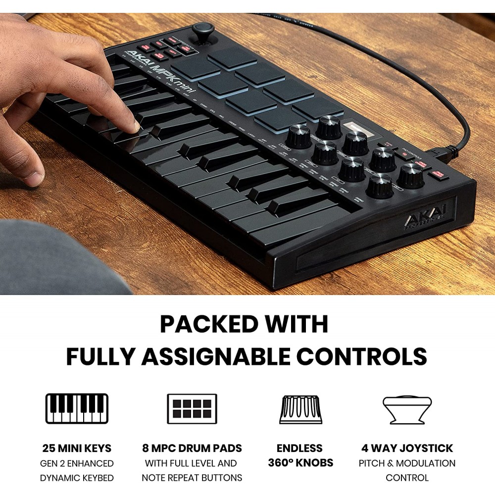 AKAI Professional MPK Mini MK3 Controlador de teclado MIDI USB de 25 teclas con 8 almohadillas de percusión con retroiluminación software