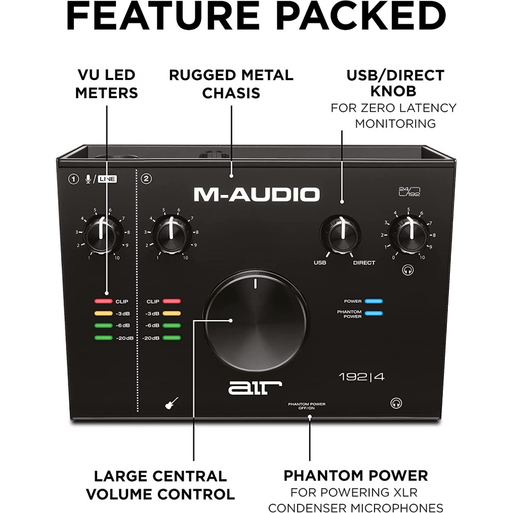 M-Audio AIR 1924 - Interfaz de audio USB con 2 entradas y 2 salidas para grabación, transmisión y podcasting, software de MPC Beats y Ableton