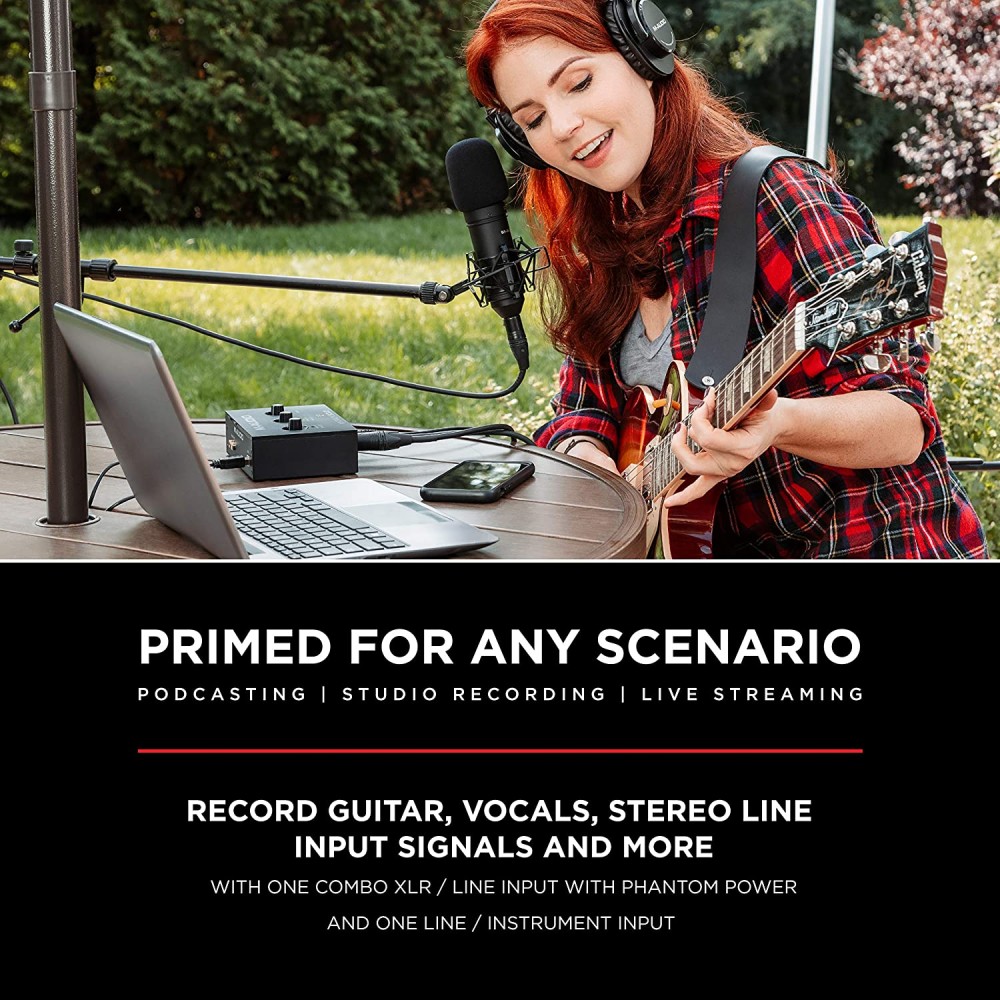 - Todo lo que necesitas de una interfaz de audio para un monitoreo sin complicaciones: salida de auriculares de 1/8 pulgada y salidas RCA estéreo para una flexibilidad total de monitoreo; interruptor USB/directo para monitoreo de latencia cero.