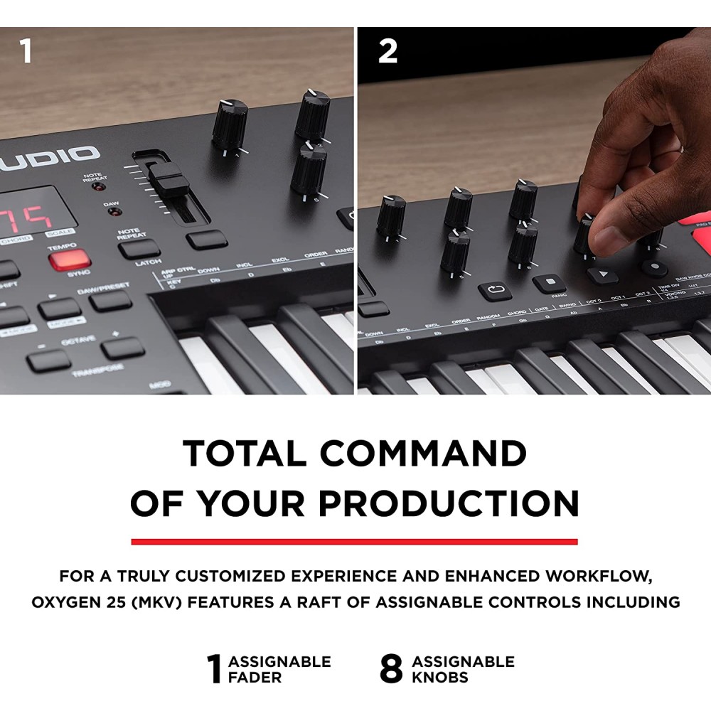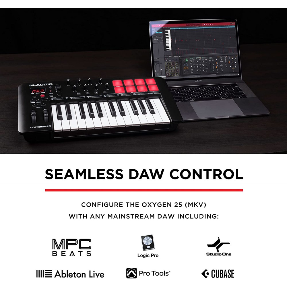 M-Audio Oxygen 25 MKV - Controlador de teclado MIDI USB de 25 teclas con almohadillas de ritmo, modos de acorde inteligente y escala