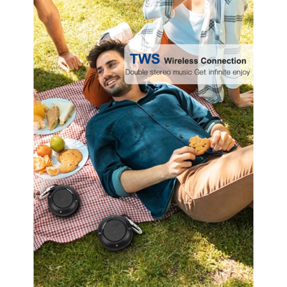 - Diseño impresionante y amigable: El mosquetón de aleación de aluminio te ofrece una cómoda forma de colgarlo y fijarlo a cualquier lugar que desees, nivel impermeable eficaz a IPx45, por lo que puedes disfrutar de la maravillosa música en el baño.