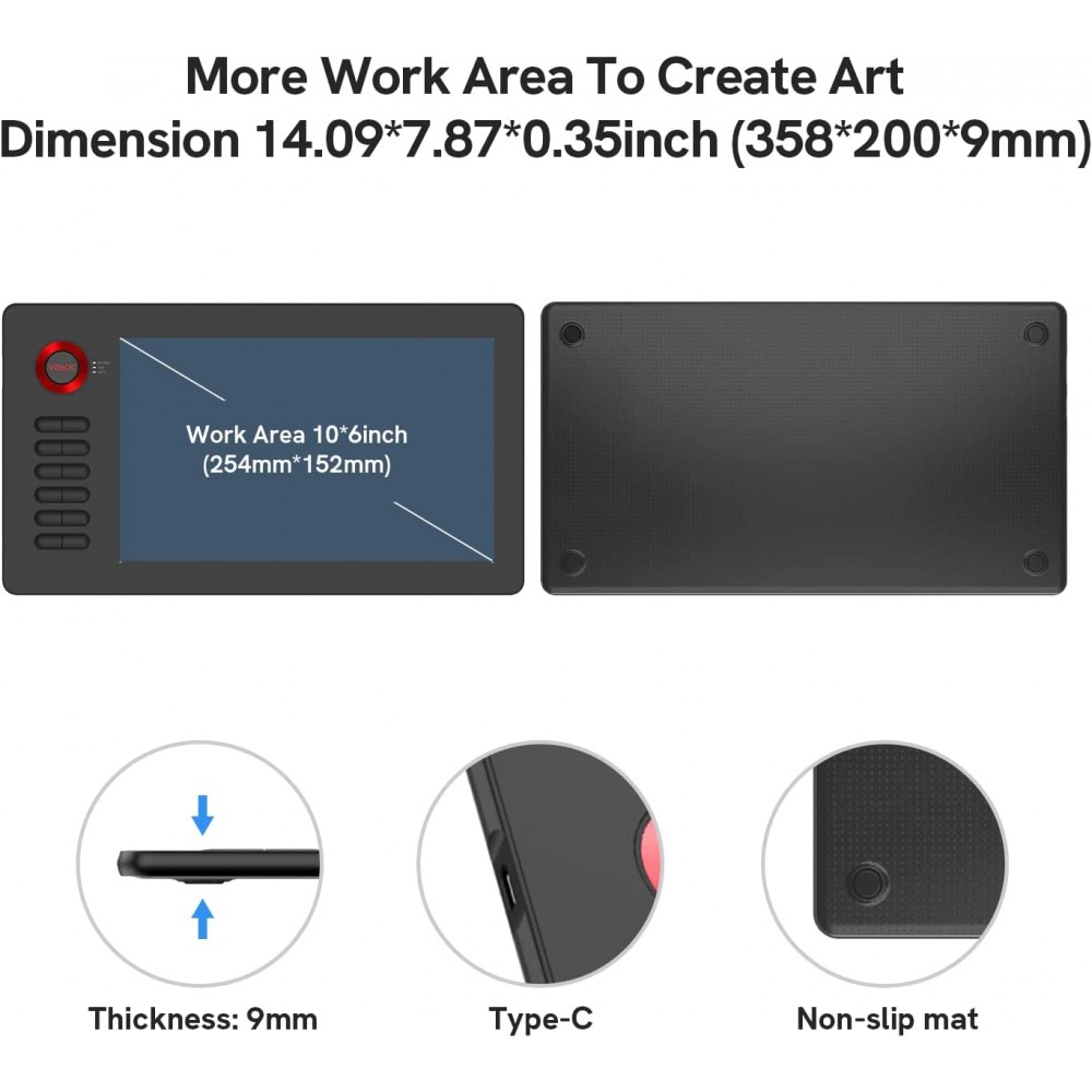- Gran espacio de trabajo: la tableta de dibujo VEIKK A15 proporciona un área de trabajo activa de 10 x 6. Este tamaño es el más popular para principiantes, muy cómodo para dibujar y aprender en línea.