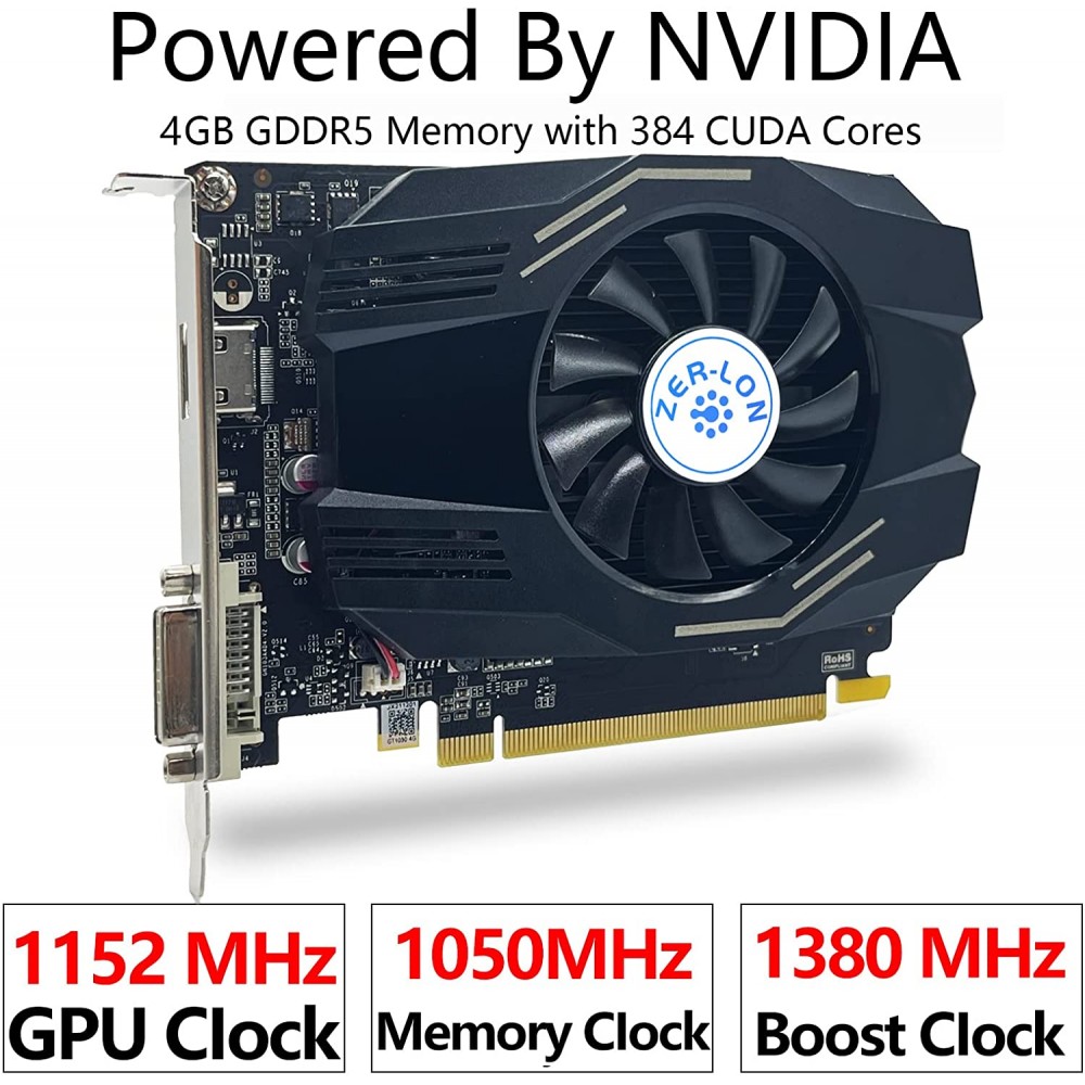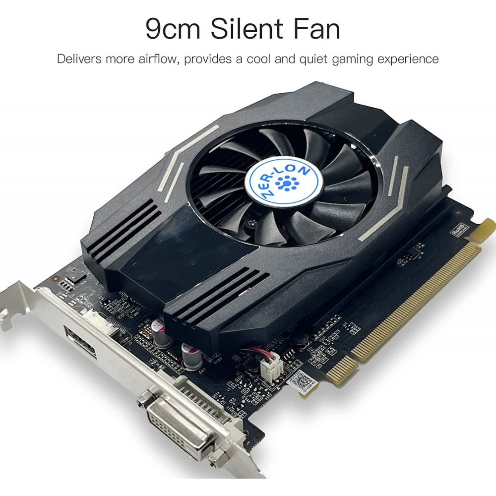ZER-LON GeForce GT 1030 Tarjeta gráfica, 4GB 64Bit GDDR4, PCIe 3.0 x4, HDMI DVI-D, DirectX 12, GPU Boost 3.0