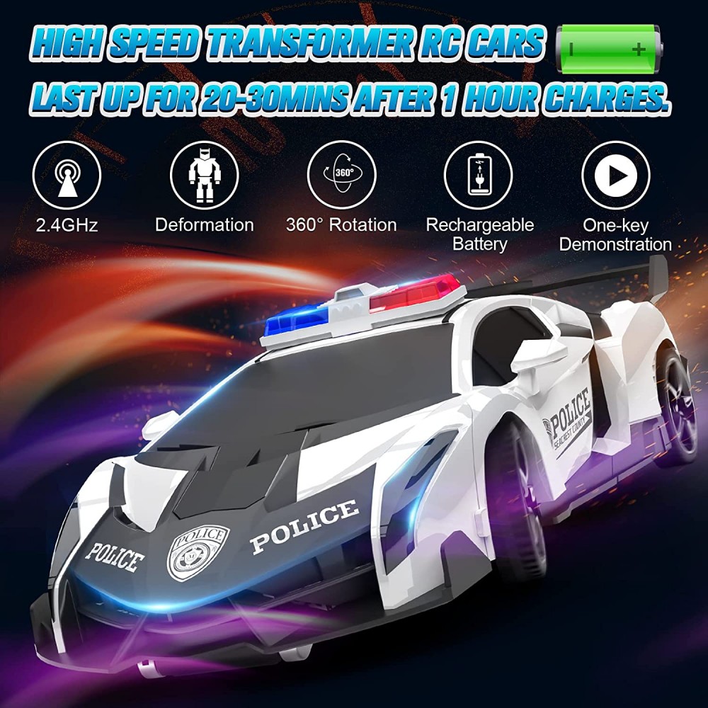 - Juguetes de coche RC de alta calidad para niños: la mejor opción de regalo para tus hijos. Contenido del paquete: 1 coche transformador RC, 1 mando a distancia, 1 destornillador, 1 batería de coche, 1 cargador de batería de coche.