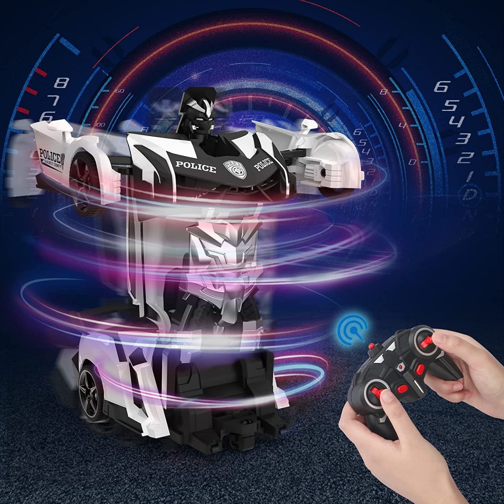 - Coches RC inteligentes con rotación de 360° para niños: 2 opciones para transformador. Se puede transformar automáticamente de coche a robot cuando presionas el botón del controlador. Se transforma de ida y vuelta tan fácil y bastante impresionante.