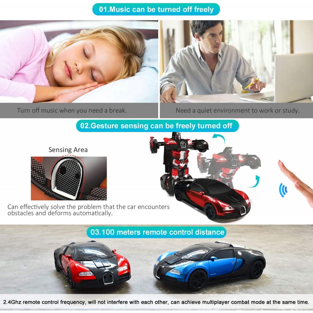 - 【Inducción y transformación de un botón】Lee las instrucciones cuidadosamente antes de tocarlo, te darás más diversión. 2 formas interesantes de jugar. Se puede transformar de coche a robot cuando presionas el botón en el control o con tu mano para sentir. Navega por las calles en un coche deportivo a la deriva o recorre el campo de batalla con un robot intergaláctico. Esto sorprenderá a los niños.