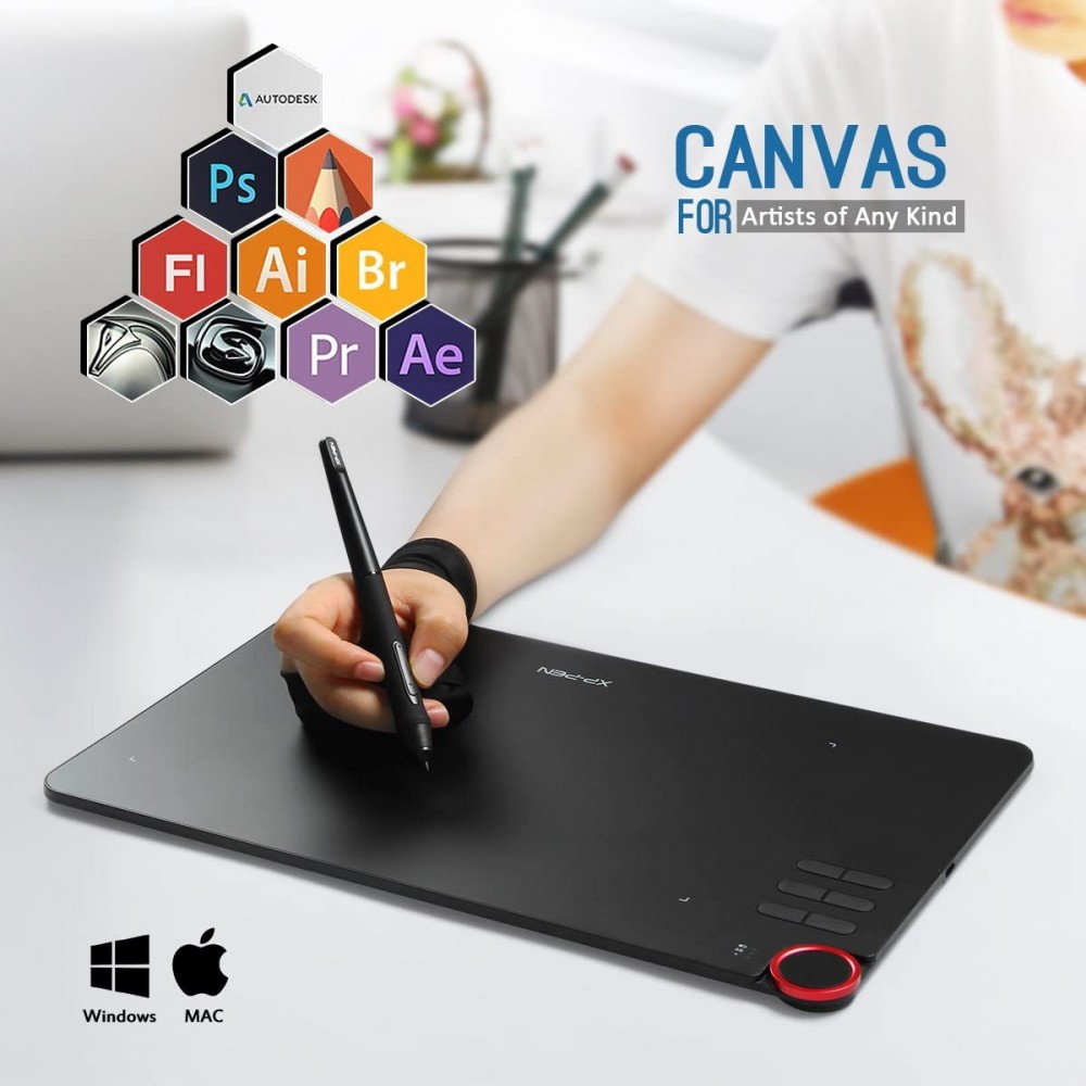 - Cuerpo ultrafino de 0.315 in con diseño ligero, hace que sea fácil de sostener y transportar en la mano, compatible con el sistema operativo Windows 10/8/7 Mac OS, se adapta a software creativo como Photoshop, SAI, Painter, Illustrator, Clip Studio, Zbrush, Krita, Gimp, Sketchbook y más, ideal para diseñadores profesionales y principiantes