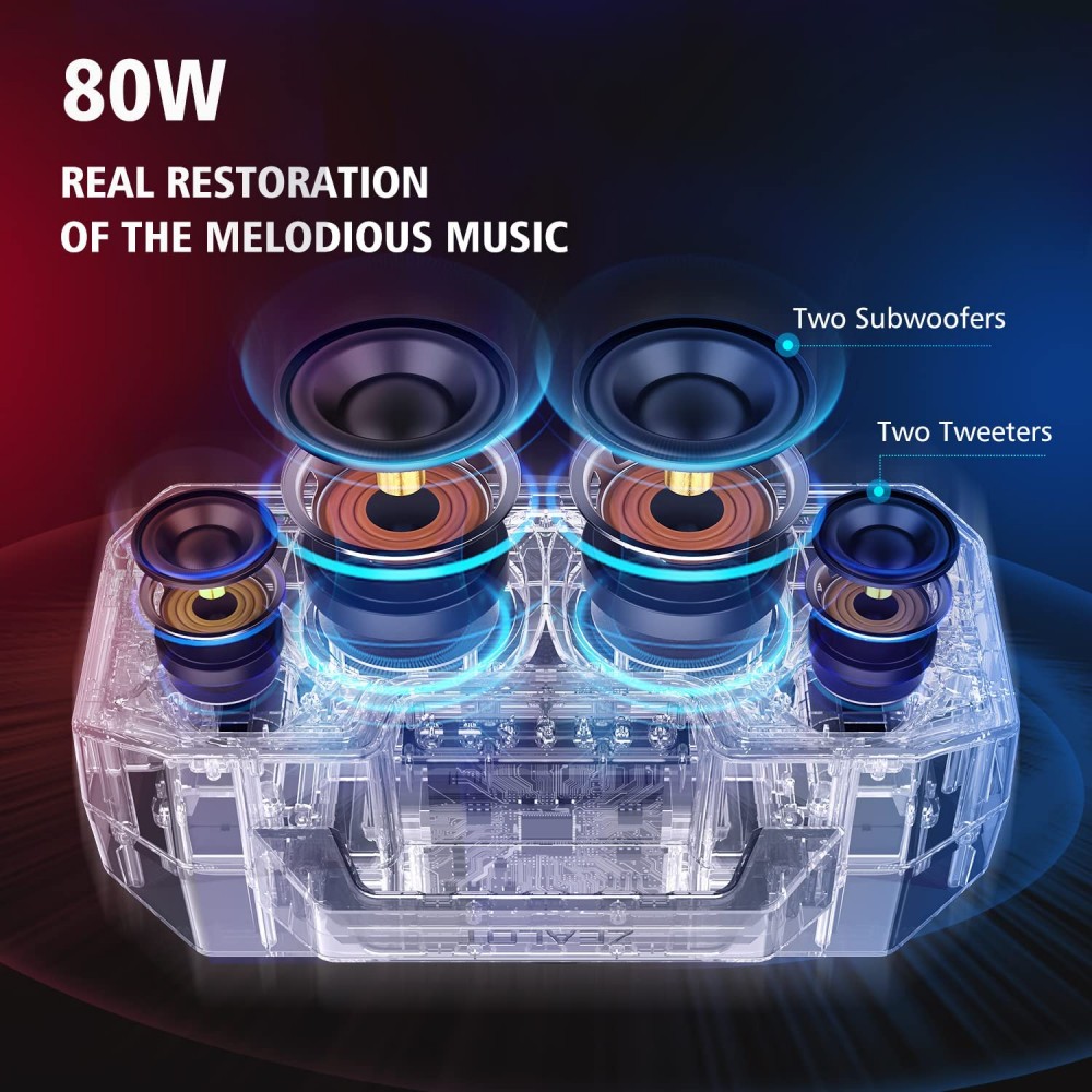 ZEALOT Altavoz Bluetooth portátil de 80 W con doble pareo, IPX7 impermeable para exteriores con batería grande de 14,400 mAh.