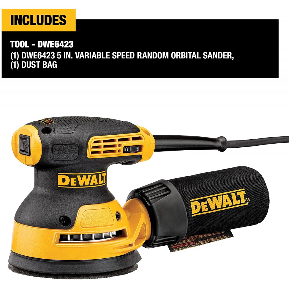 DEWALT Lijadora de órbita aleatoria, velocidad variable, 5 pulgadas DWE6423